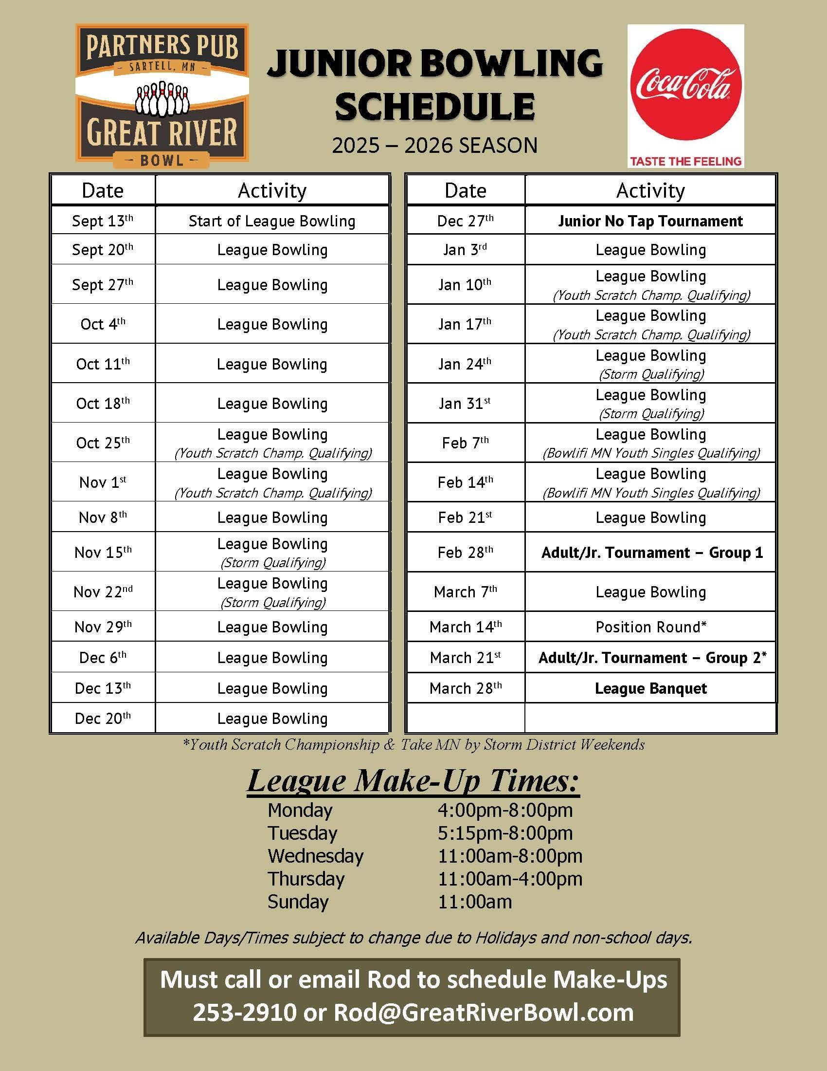 Many of our Youth Bowlers are in other activities as well which is why we offer many pre and post league make-up times if you can't make it on a particular day.